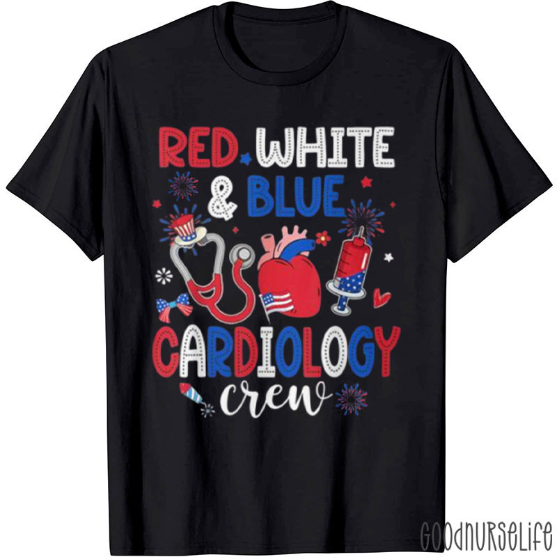 Red White & Blue Cardiology Crew 4th Of July Nurse T-Shirt