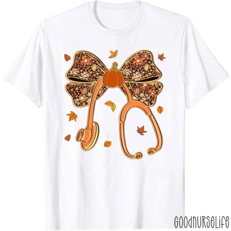 Autumn Floral Stethoscope With Pumpkin Bow Nurse T-Shirt