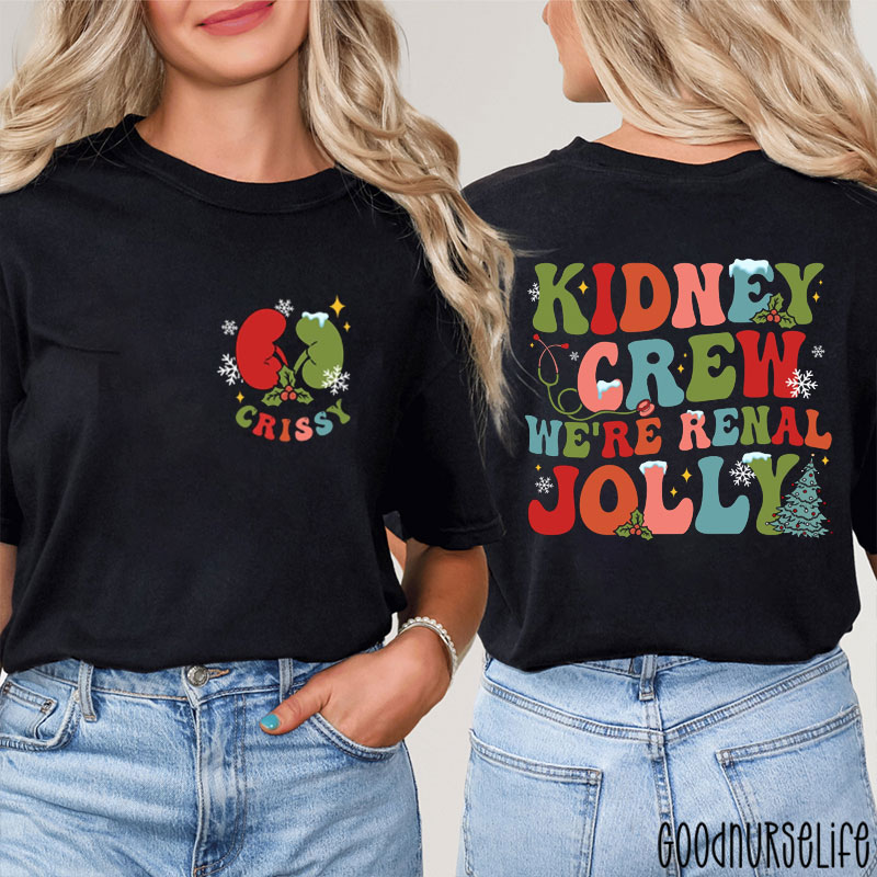 Personalized Kidney Crew We're Renal Jolly Nurse Two Sided T-Shirt