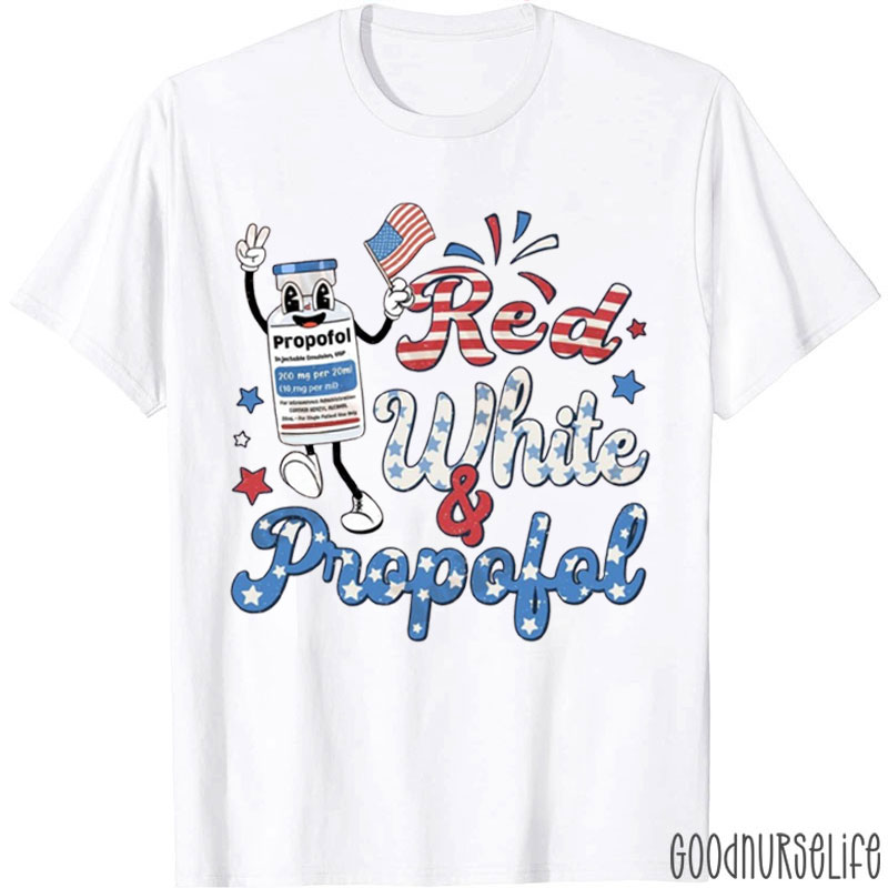 Red White & Propofol Funny ICU Nurse 4th Of July Nurse T-Shirt