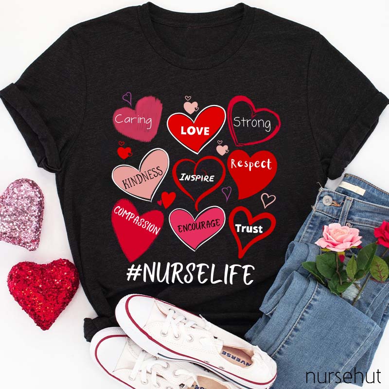 Caring Love Strong Kindness Inspire Respect Nurse Life Nurse T-Shirt