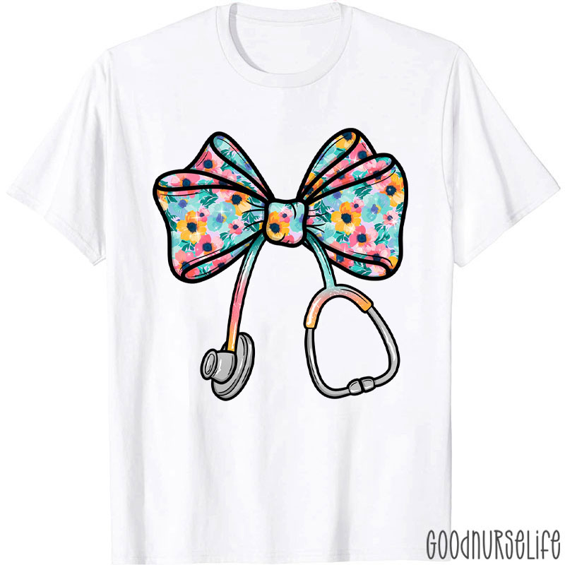 Spring Floral Nurse Coquette Bow Stethoscope Nurse T-Shirt