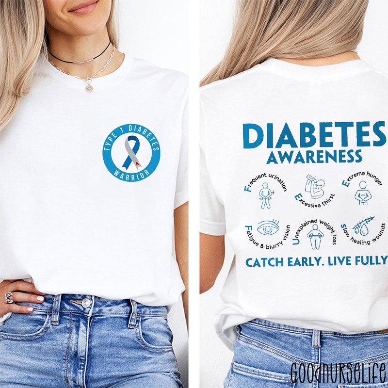 Support Squad Diabetes Awareness Blue Ribbon Nurse Two Sided T-Shirt
