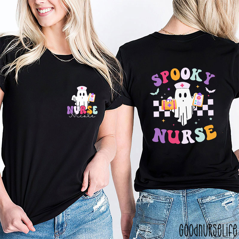 Personalized Halloween Nurse Whimsy Spooky Ghost Nurse Two Sided T-Shirt