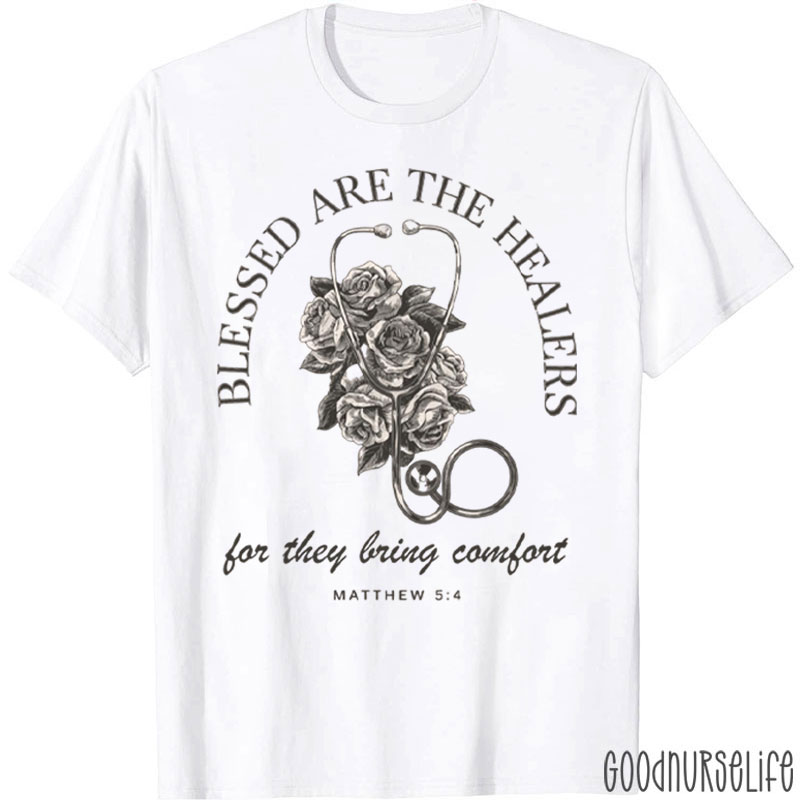 Blessed Are The Healers Flowers Nurse T-Shirt