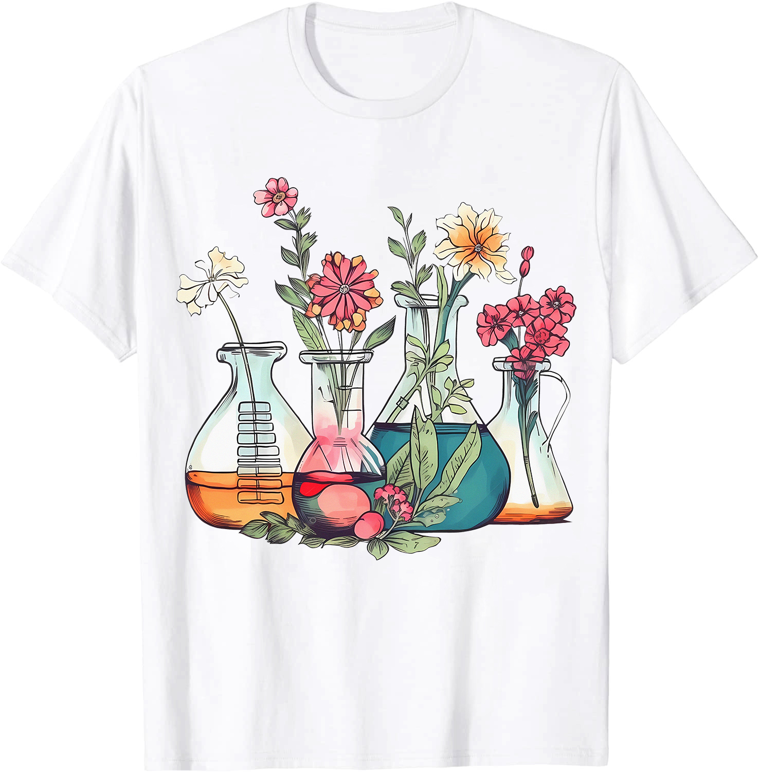 Floral Beakers Chemistry Laboratory T-Shirt