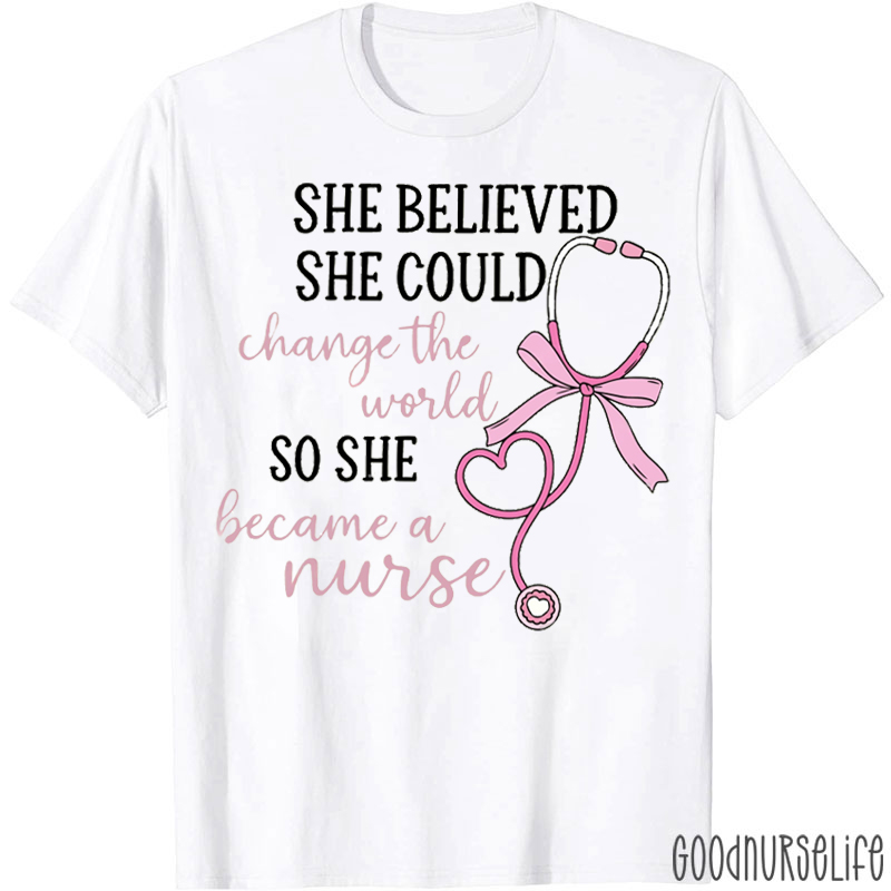 Pink Stethoscope She Believed She Could Change The World Nurse T-shirt