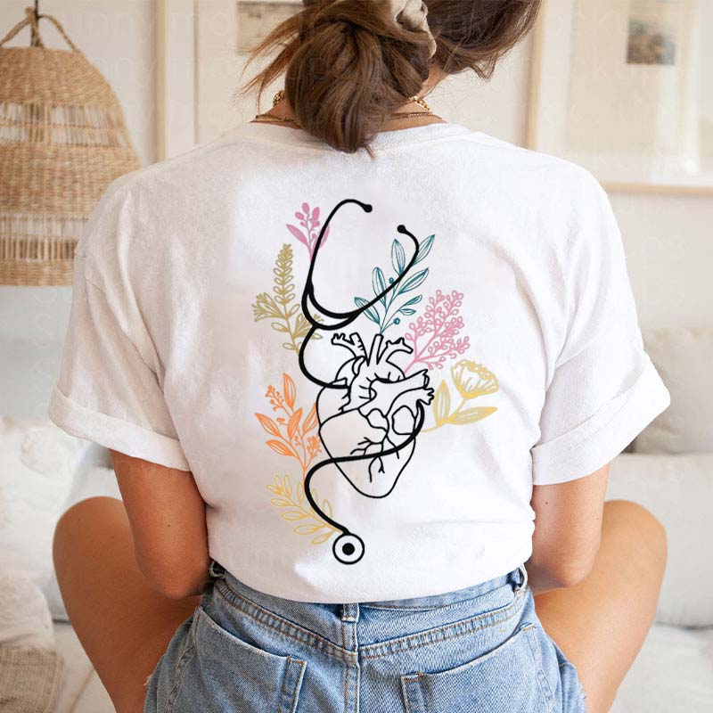 Floral Stethoscope Heart Cardiac Nurse T-Shirt