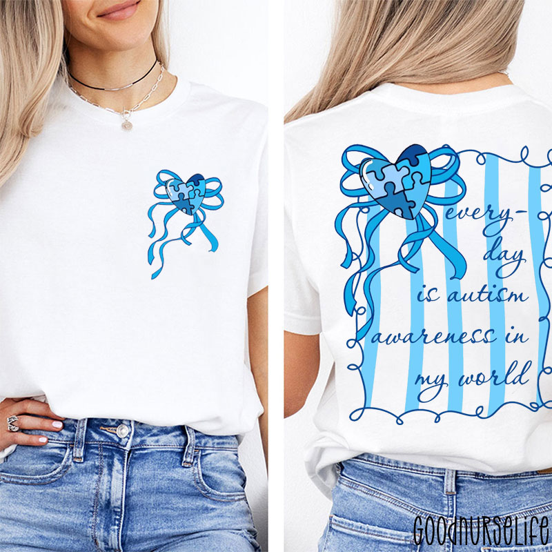 Every Day Is Autism Awareness Blue Ribbon Two Sided T-Shirt
