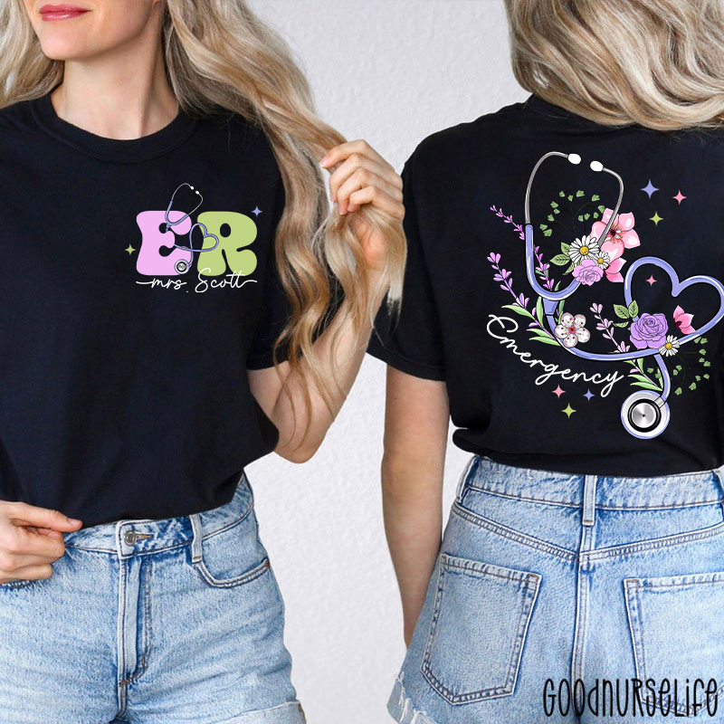 Personalized Name Emergency Nurse Two Sided T-Shirt