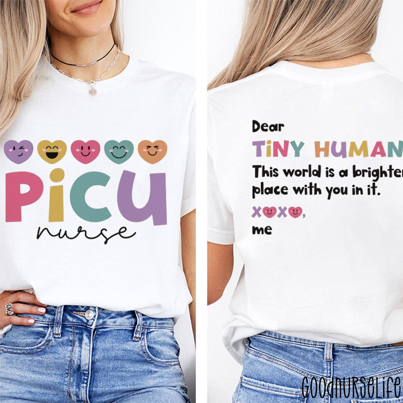 PICU Nurse Dear Tiny Human Nurse Two Sided T-Shirt