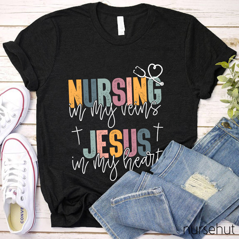 Nursing In My Veins Jesus In My Heart Nurse T-Shirt