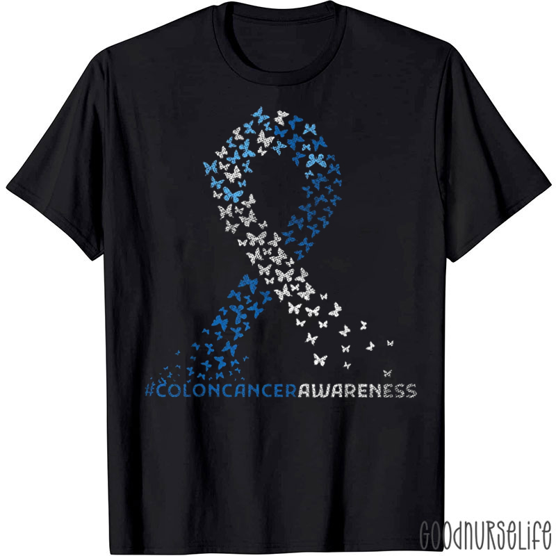Blue And White Butterfly Colon Cancer Awareness T-shirt