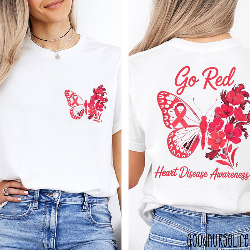 Flower And Butterfly Go Red Two Sided T-Shirt