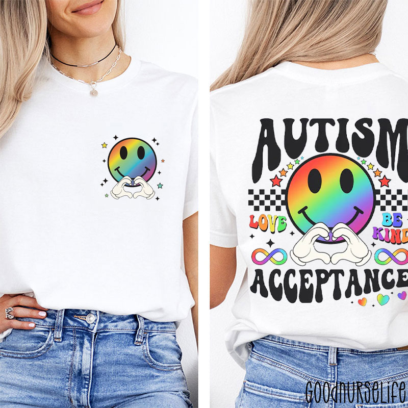 Autism Acceptance Love Kind Smile Face Two Sided T-Shirt