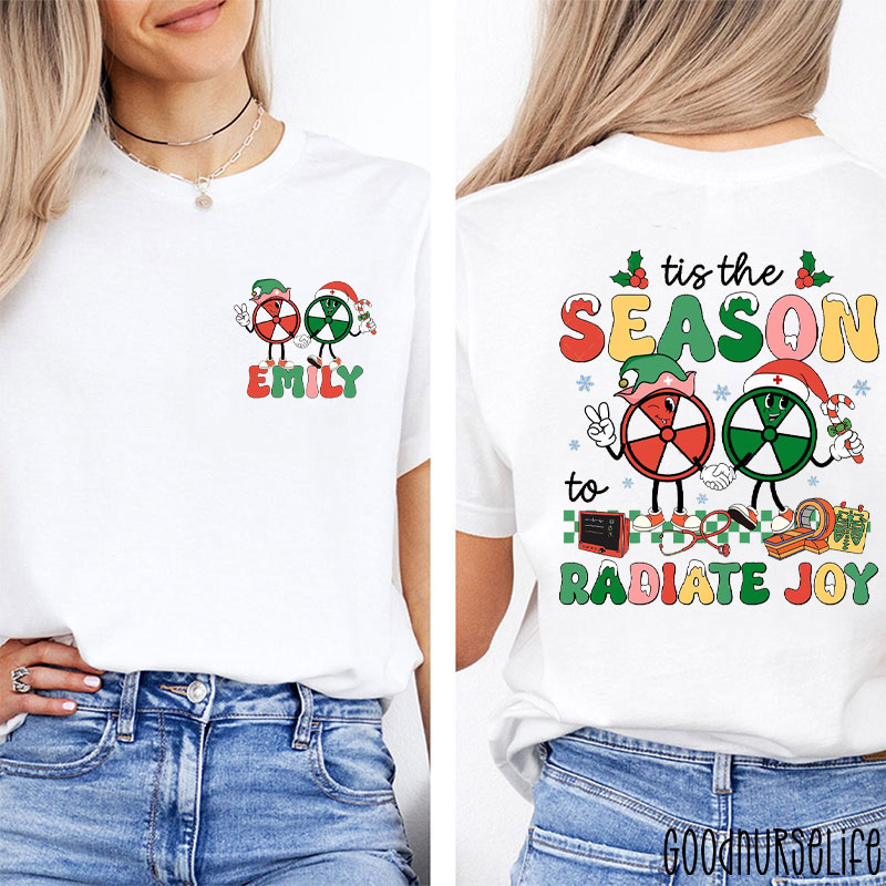 Personalized Tis The Season To Radiate Joy With Festive Radiation Symbols Two Sided T-Shirt
