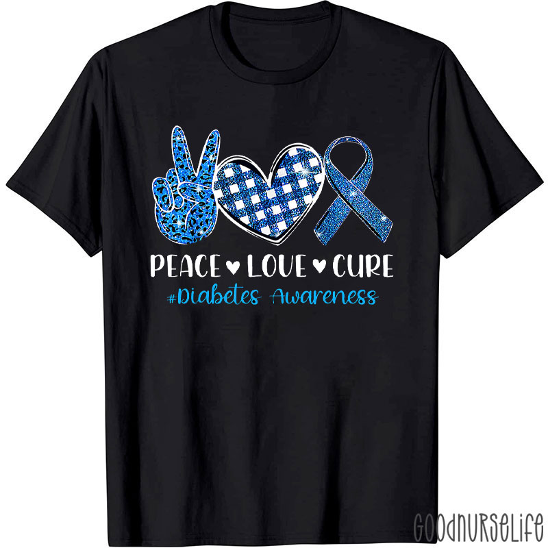 Health Advocacy Peace Love Cure Diabetes Awareness Nurse T-Shirt