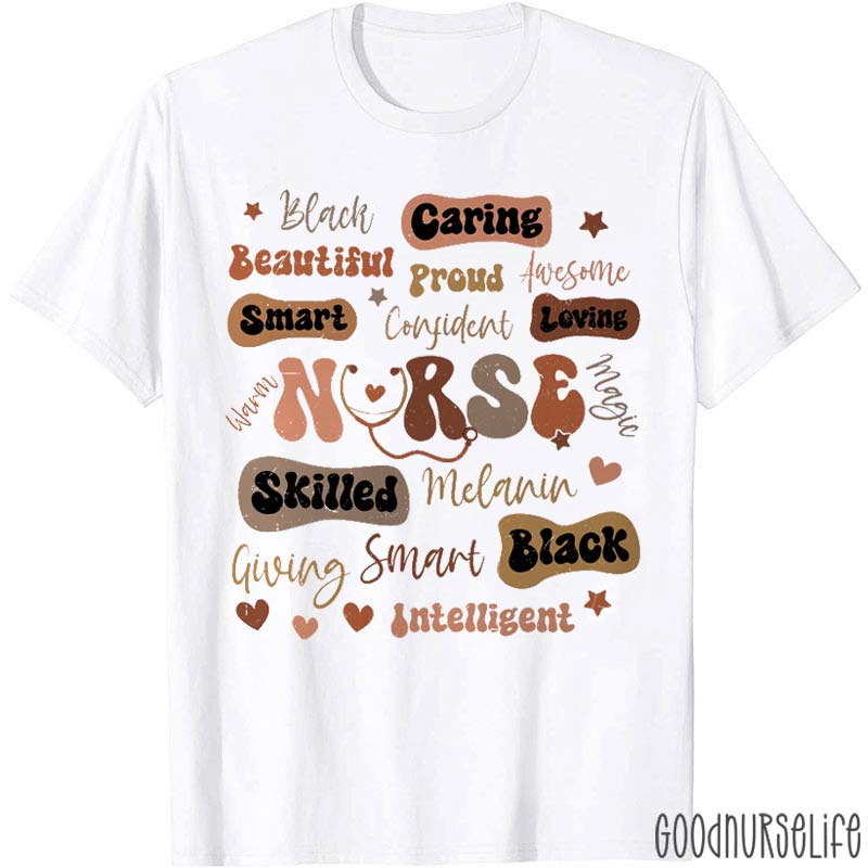 Caring Smart Loving Skilled Black Nurse T-Shirt