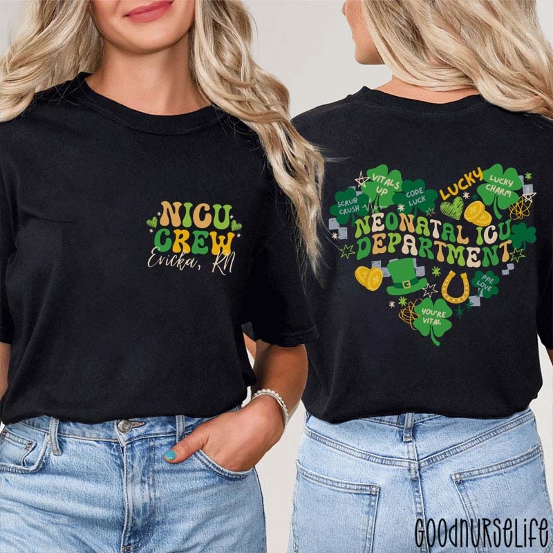 Personalized St Patrick NICU Crew Nurse Two Sided T-Shirt