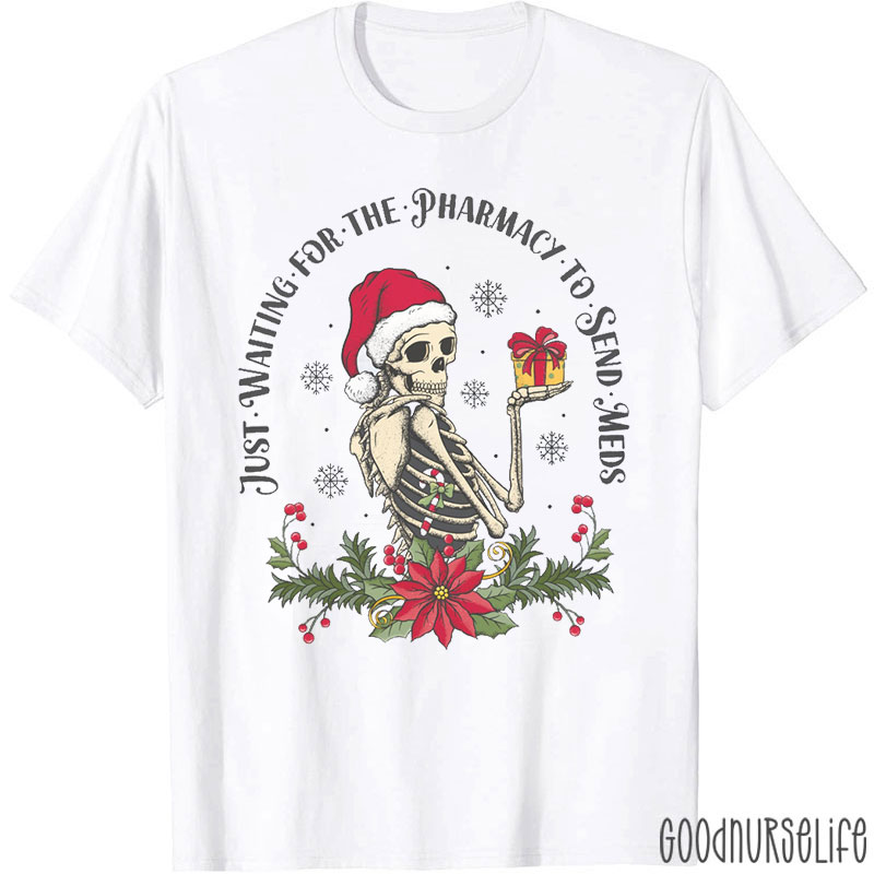 Christmas Pharmacy Skeleton Waiting For Meds T-Shirt