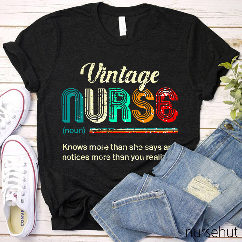 Vintage Nurse Knows More Than She Says And Notices More Than You Realized Nurse T-Shirt