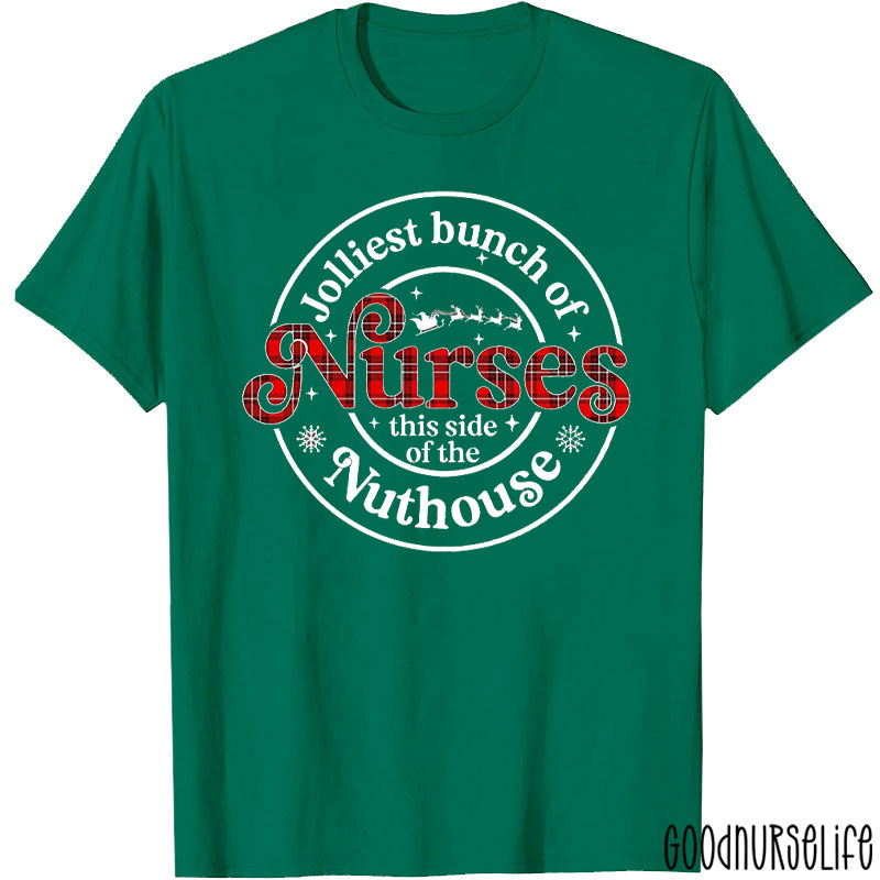 Whimsical Jolliest Nurses Nuthouse Festive Nurse T-Shirt
