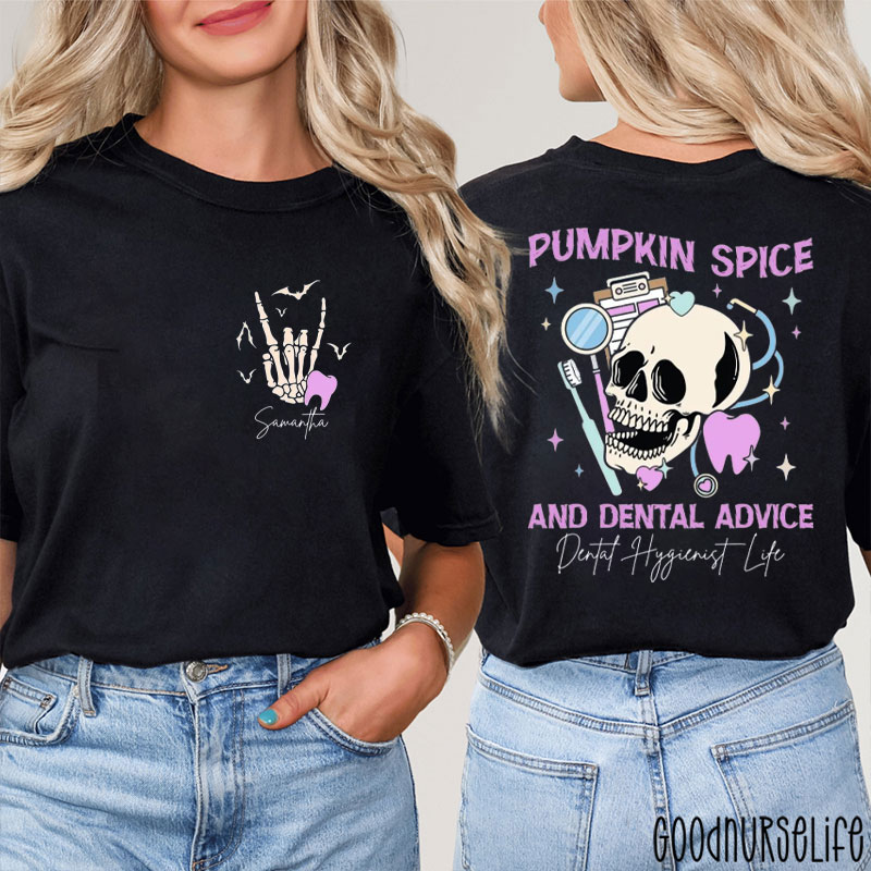 Personalized Pumpkin Spice And Dental Advice Dental Hygienist Life Two Sided T-Shirt