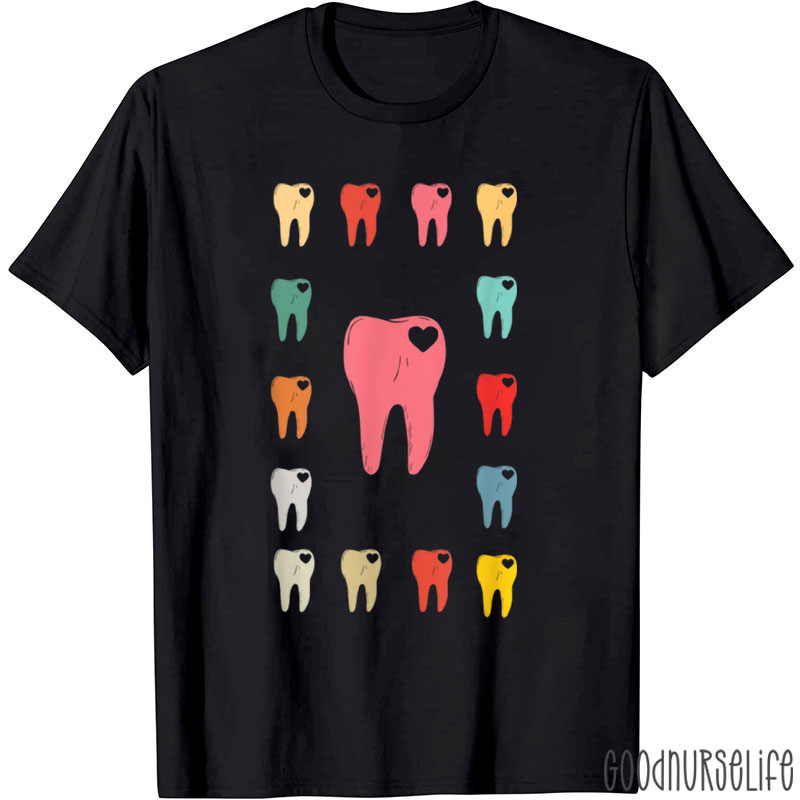 Tooth Heart Pattern Dental Assistant Hygienist T-Shirt