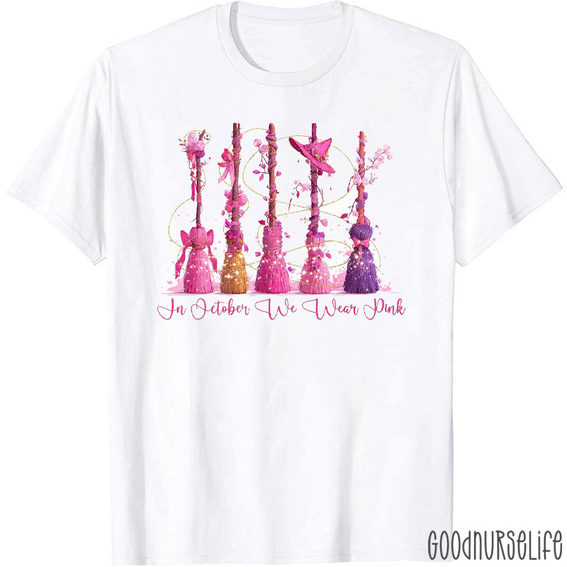 October Pink Witch Brooms Breast Cancer Awareness Nurse T-Shirt