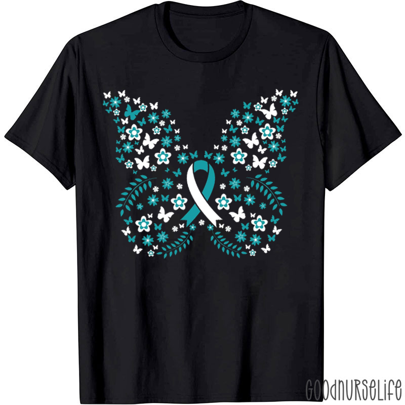 Butterfly Ribbon Cervical Cancer T-shirt