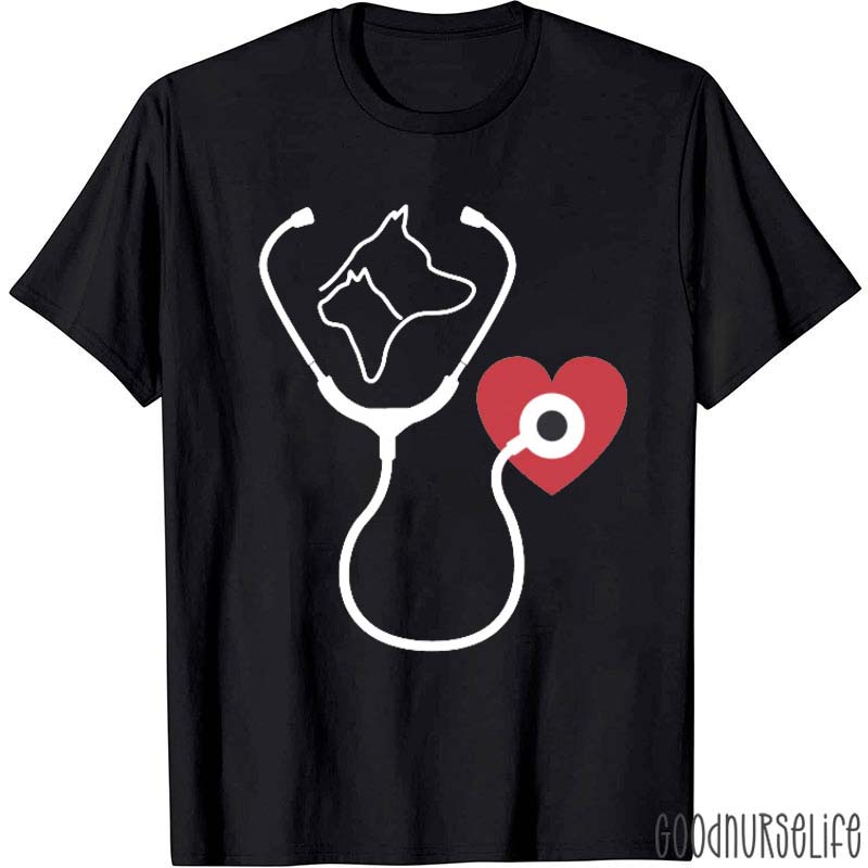 Dog And Cat Silhouette Veterinarian Nurse T-Shirt