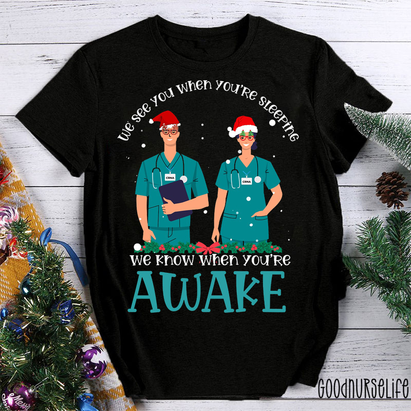 We See You When You're Sleeping CRNA Nurse Christmas T-Shirt