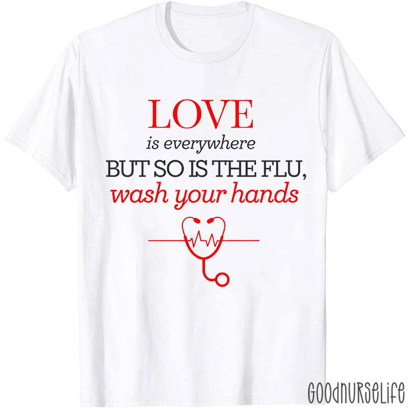 Love Is Everywhere But So Is The Flu Wash Your Hands Nurse T-Shirt