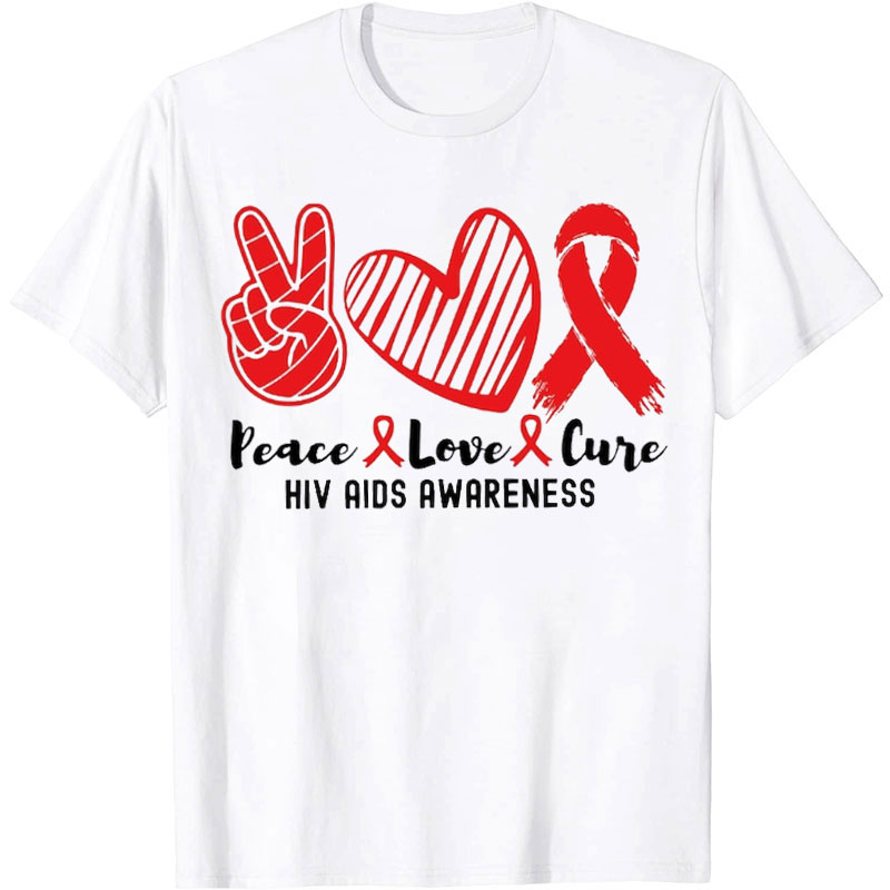 Peace Love Cure Hiv Aids Awareness Nurse T-shirt