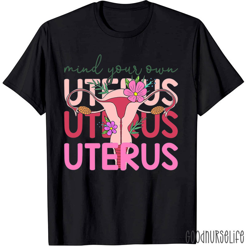 Mind Your Own Uterus Floral Uterus T-Shirt