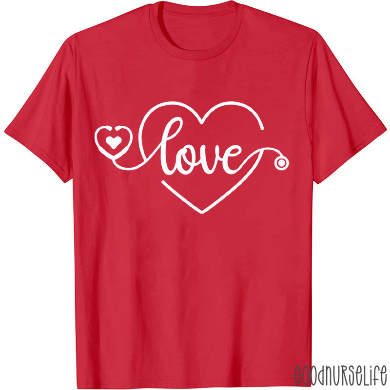 Valentine Love Heart Shaped Stethoscope Nurse T-Shirt