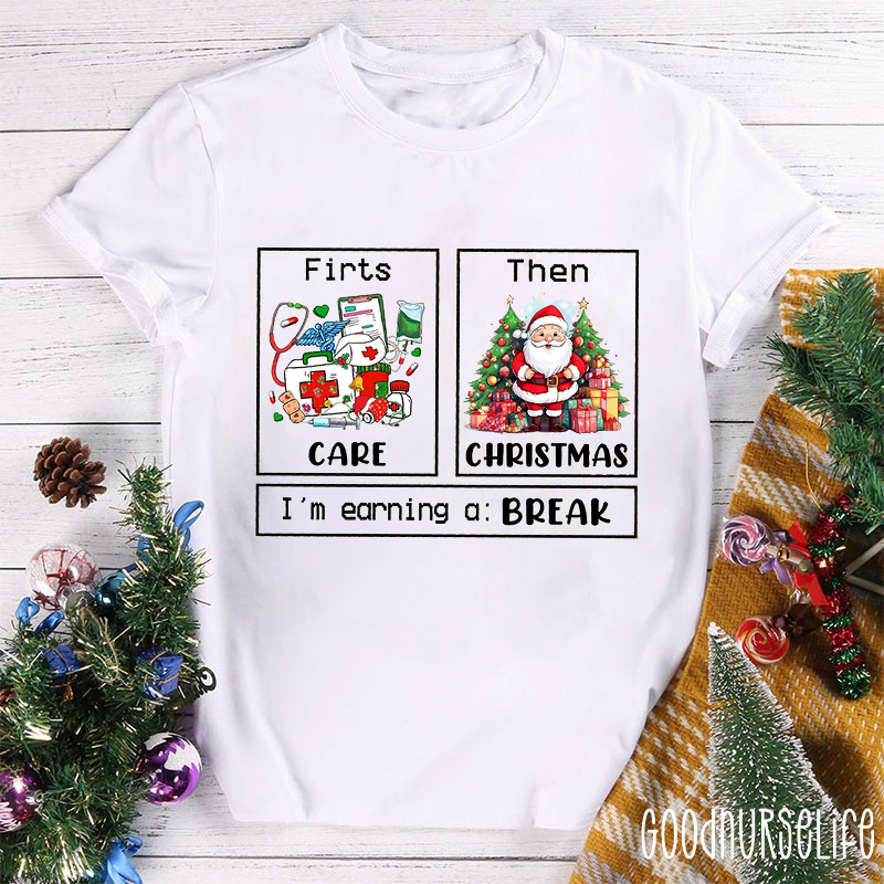 First Care Then Christmas I'm Earning A Break Nurse T-shirt