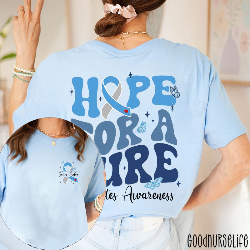 Personalized Hope For A Cure Diabetes Awareness Nurse Two Sided T-Shirt