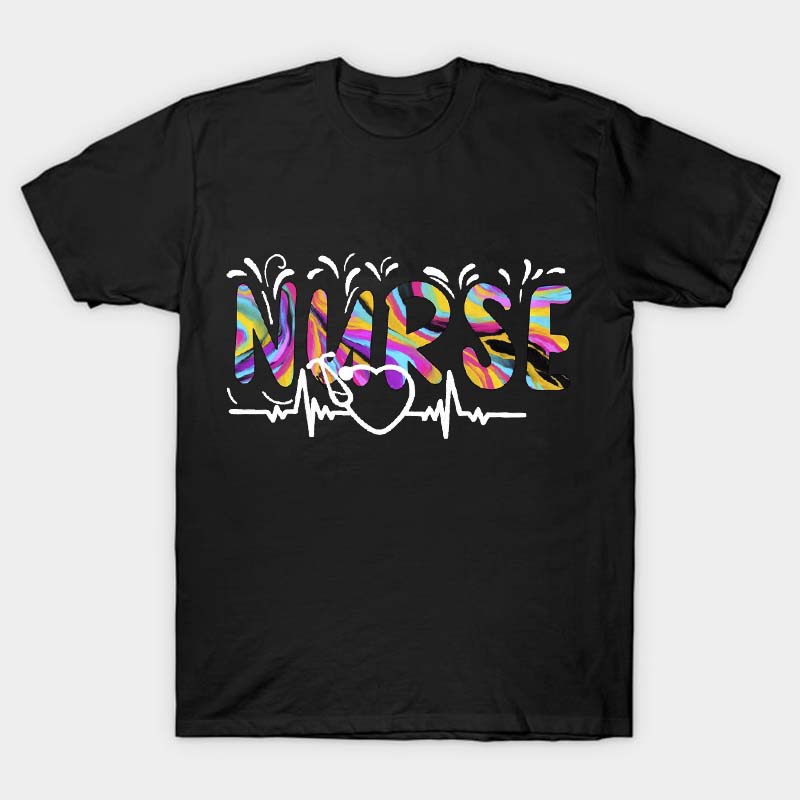Colorful Nurse Heartbeat Nurse T-Shirt