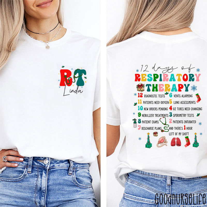 Personalized 12 Days Of Respiratory Therapy Colorful Festive Two Sided T-Shirt