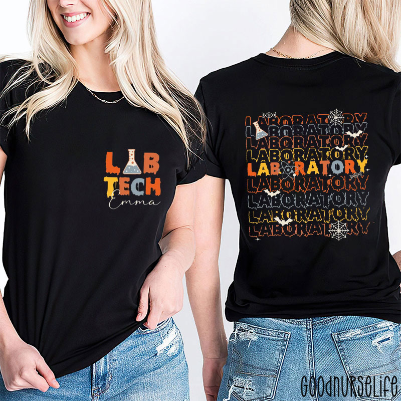 Personalized Halloween Laboratory Tech Two Sided T-Shirt