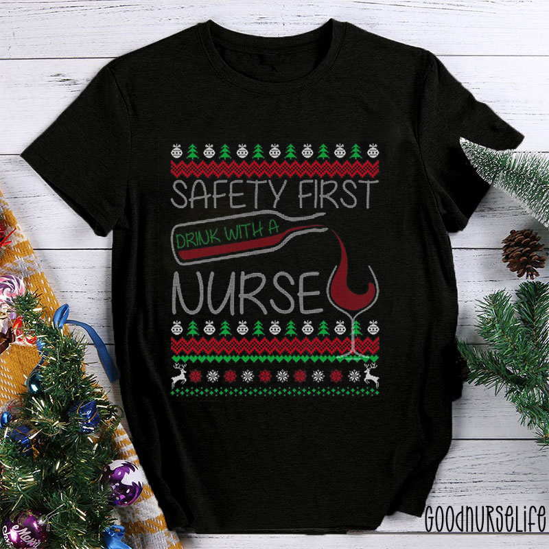 Safety First Drink With A Nurse T-shirt