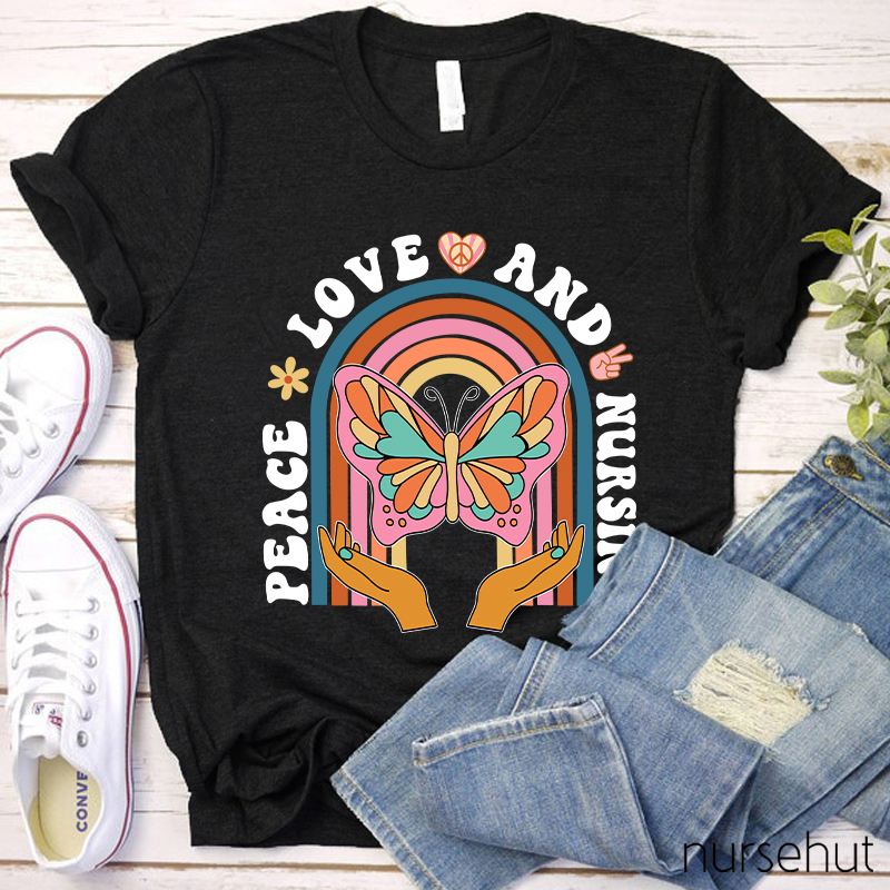 Peace Love And Nursing Nurse T-Shirt