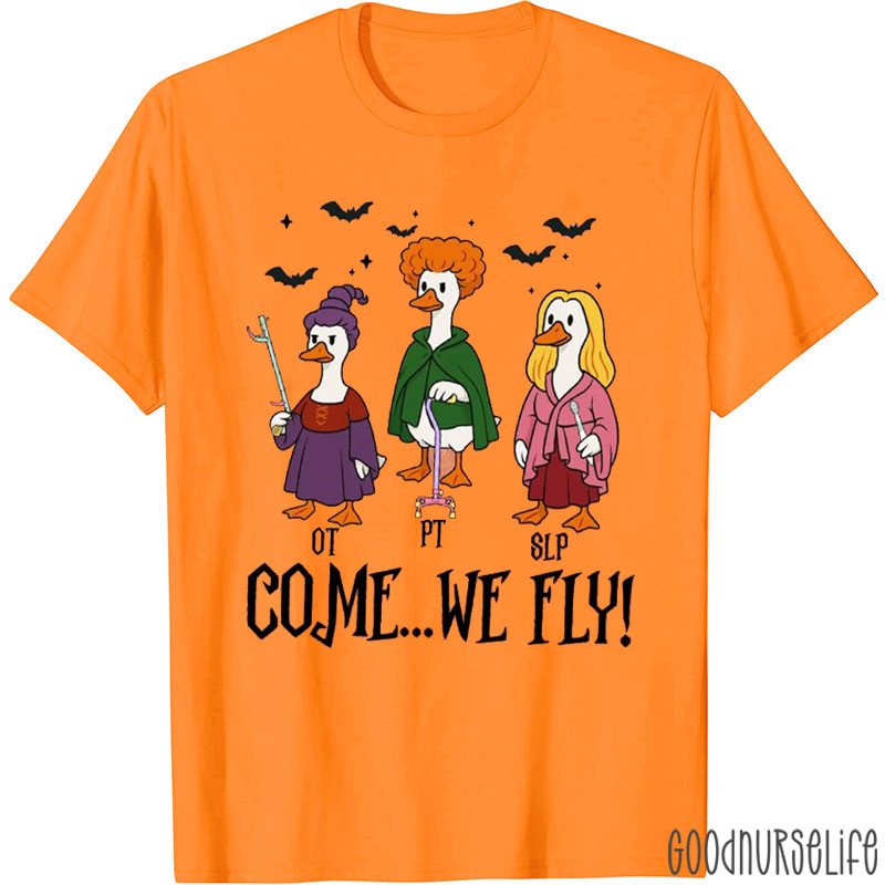 Halloween Duck Witch Come We Fly T-Shirt