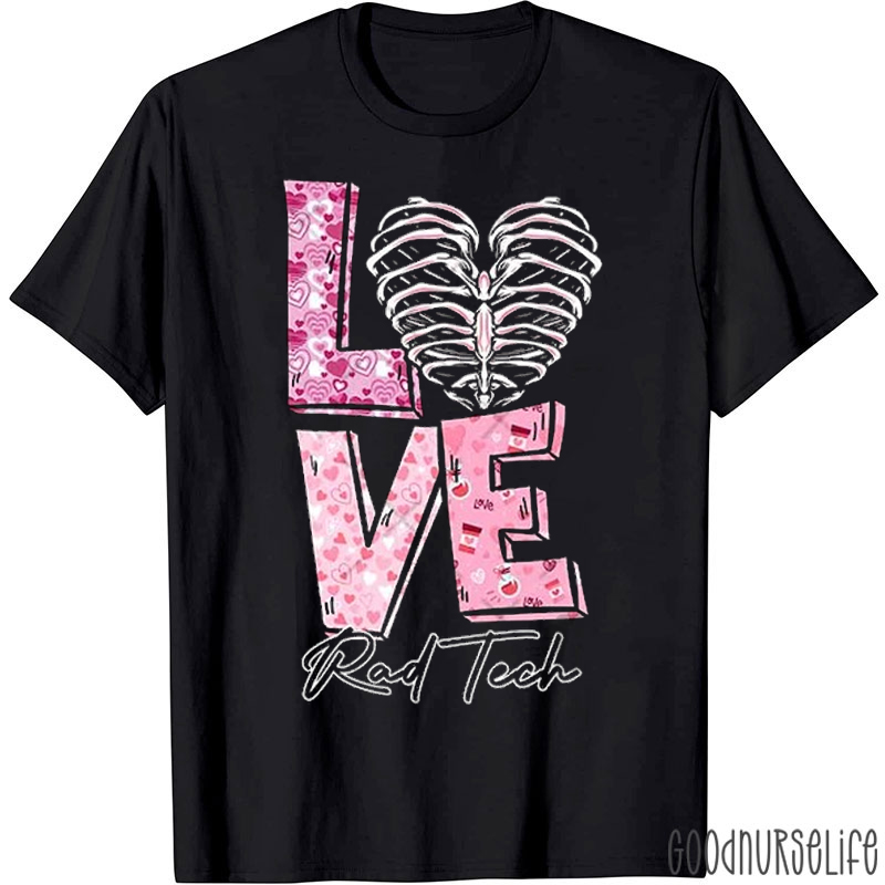 Heart Rib Valentine Love Rad Tech T-shirt