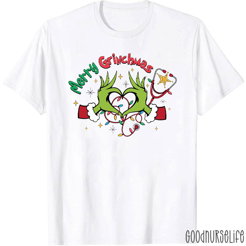 Merry Grinchmas Medical Heart Hands Nurse T-Shirt