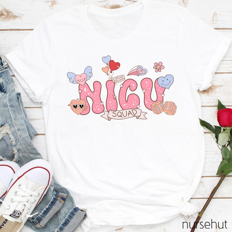 Personalized Cute Pink Heart Nurse T-Shirt