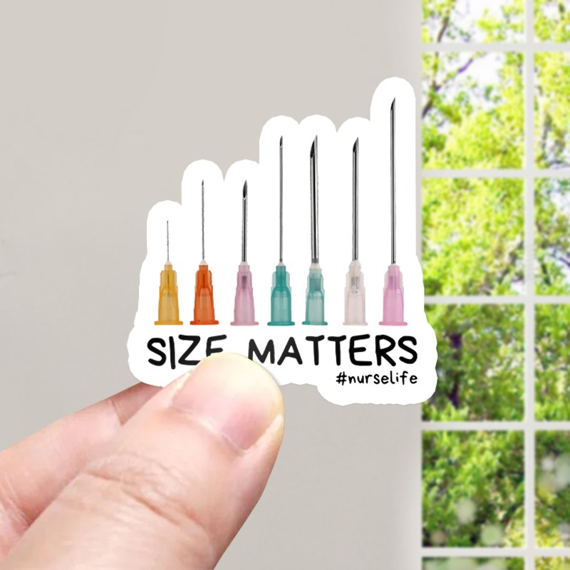 Let’s be honest—nurses know a thing or two about size. This popular sticker features a rainbow lineup of injection needles, humorously captioned “Size Matters” with a #NurseLife tag. It's the perfect blend of sarcasm and real talk, and phlebotomists in particular love it.