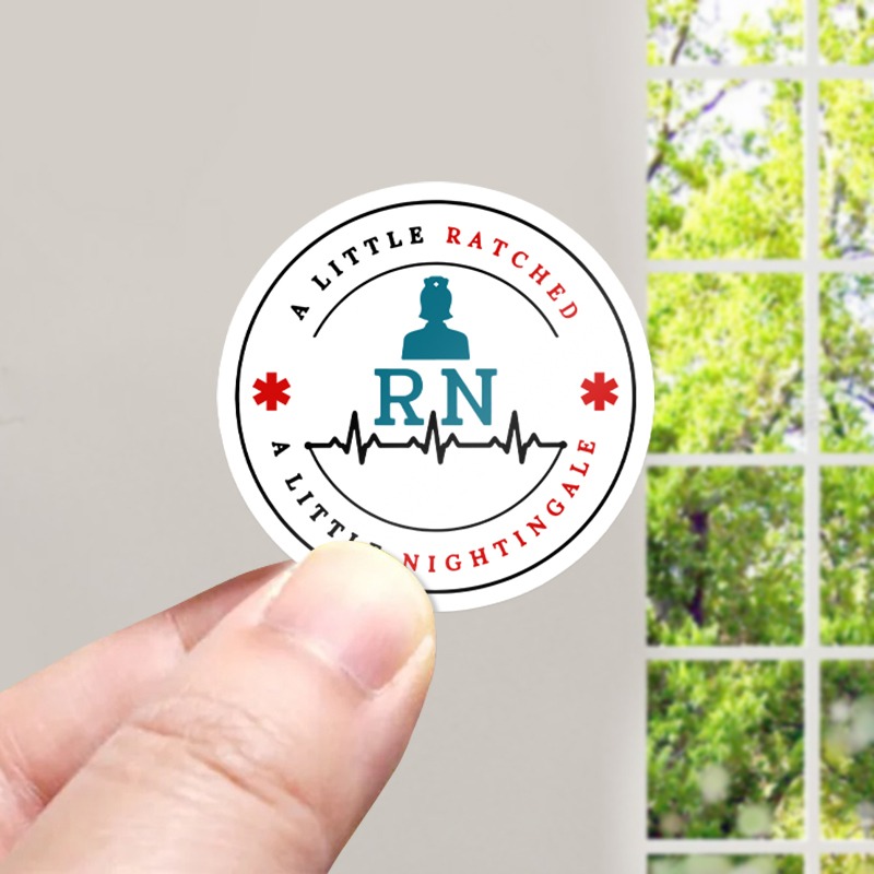 Every nurse has a wild side and a caring side. This circular sticker showcases a balance of both with its clever phrase: “A Little Ratched, A Little Nightingale.” Featuring a heartbeat line and RN emblem, it’s a fun way to acknowledge the daily switch between sassy and saintly.