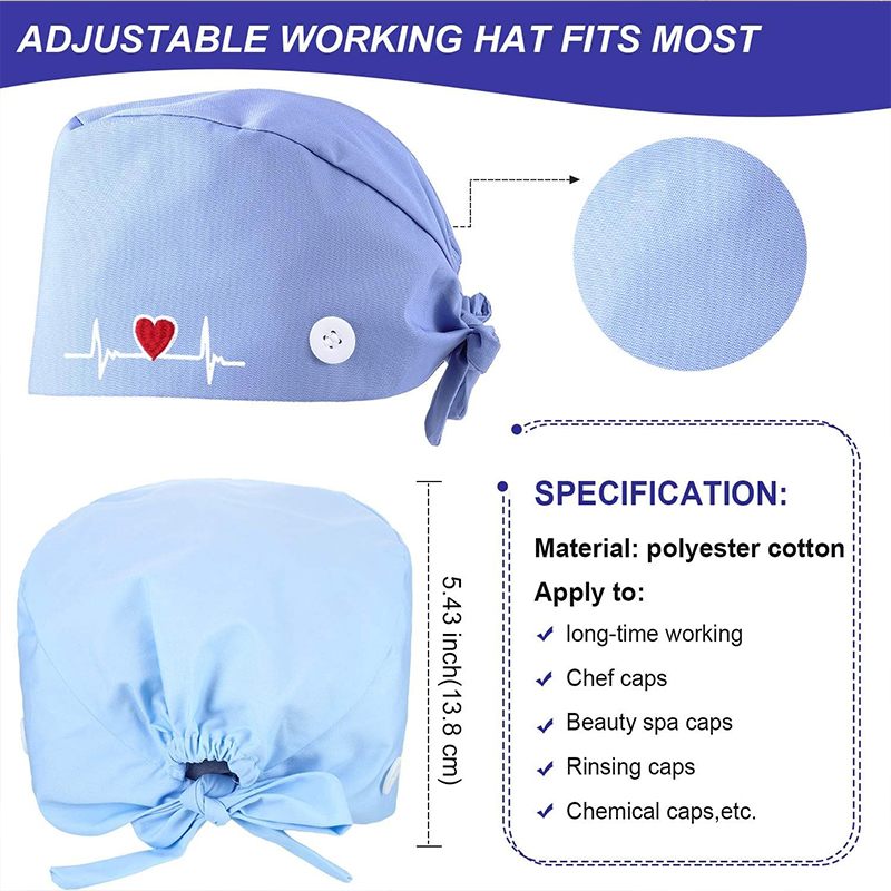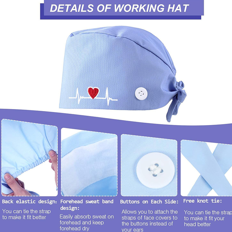 Cotton Sweatband Design: The nurse caps feature a soft sweatband on the forehead, which can easily and effectively absorb sweat from the forehead; by wearing the hat, there will no longer be sweat dripping into your eyes, keeping your forehead clean and dry even during long hours of work.